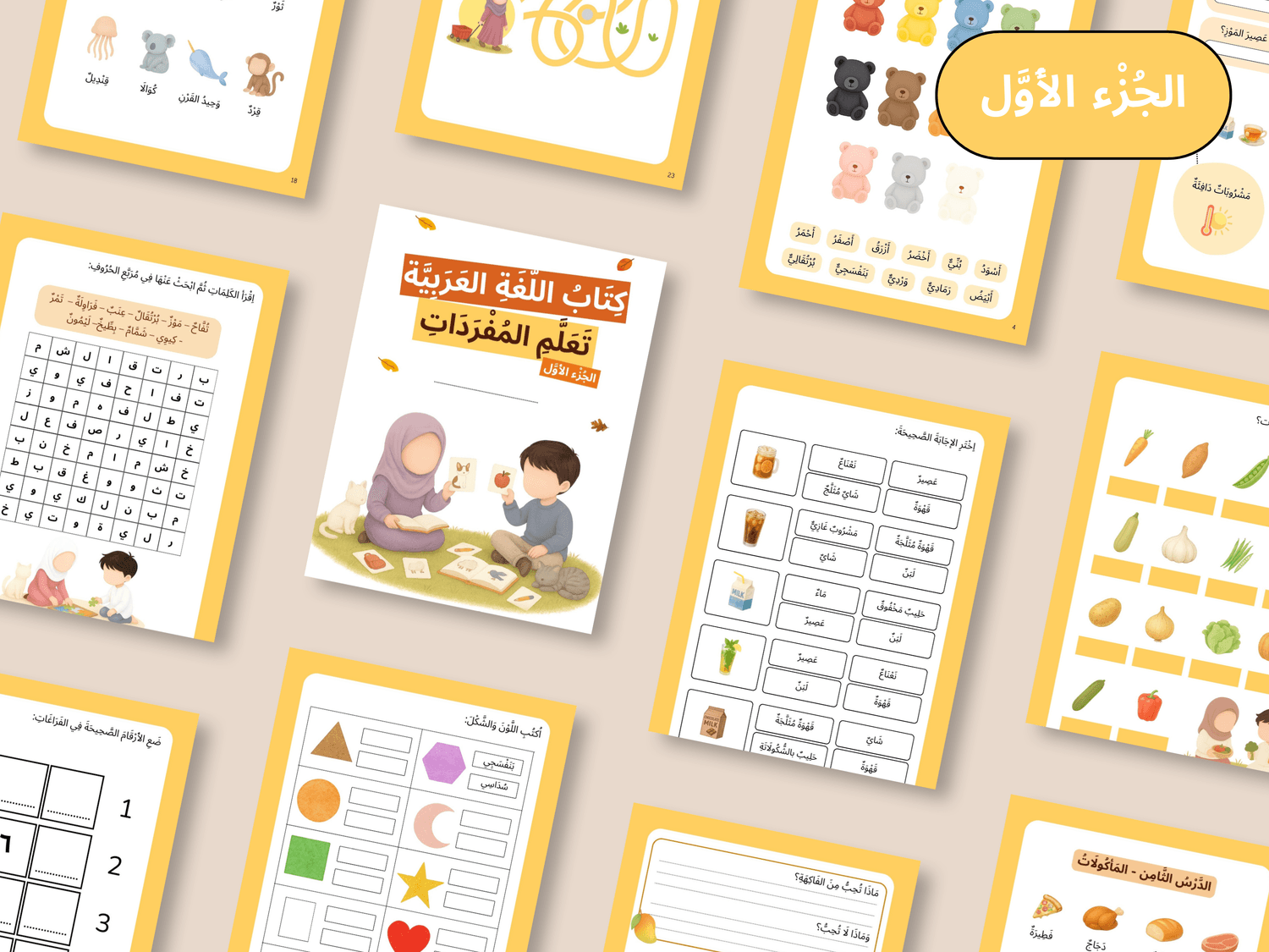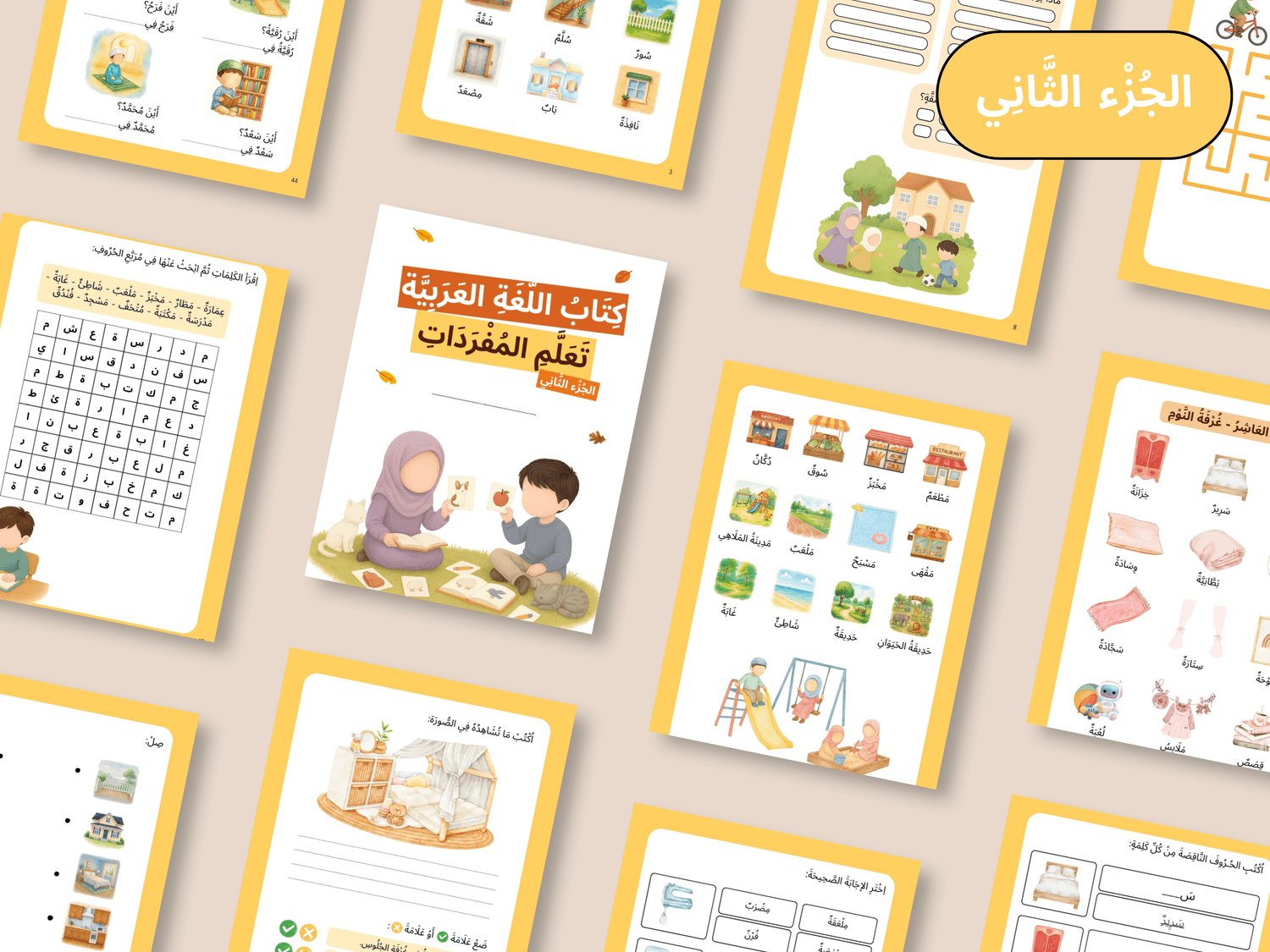 Kindvriendelijke werkboekjes voor Arabische woordenschat.